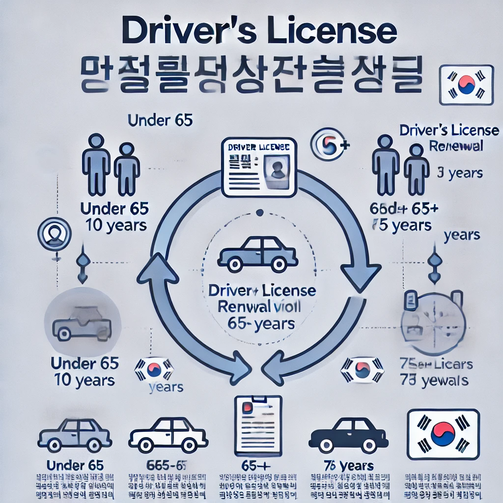 운전면허증은 정해진 주기마다 갱신해야 하며, 나이와 면허 종류에 따라 갱신 간격이 다릅니다.