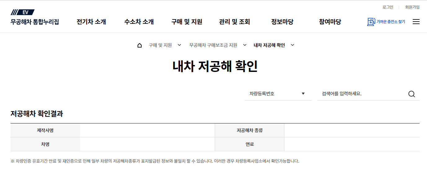 - 무공해차 통합누리집 접속 (www.ev.or.kr)