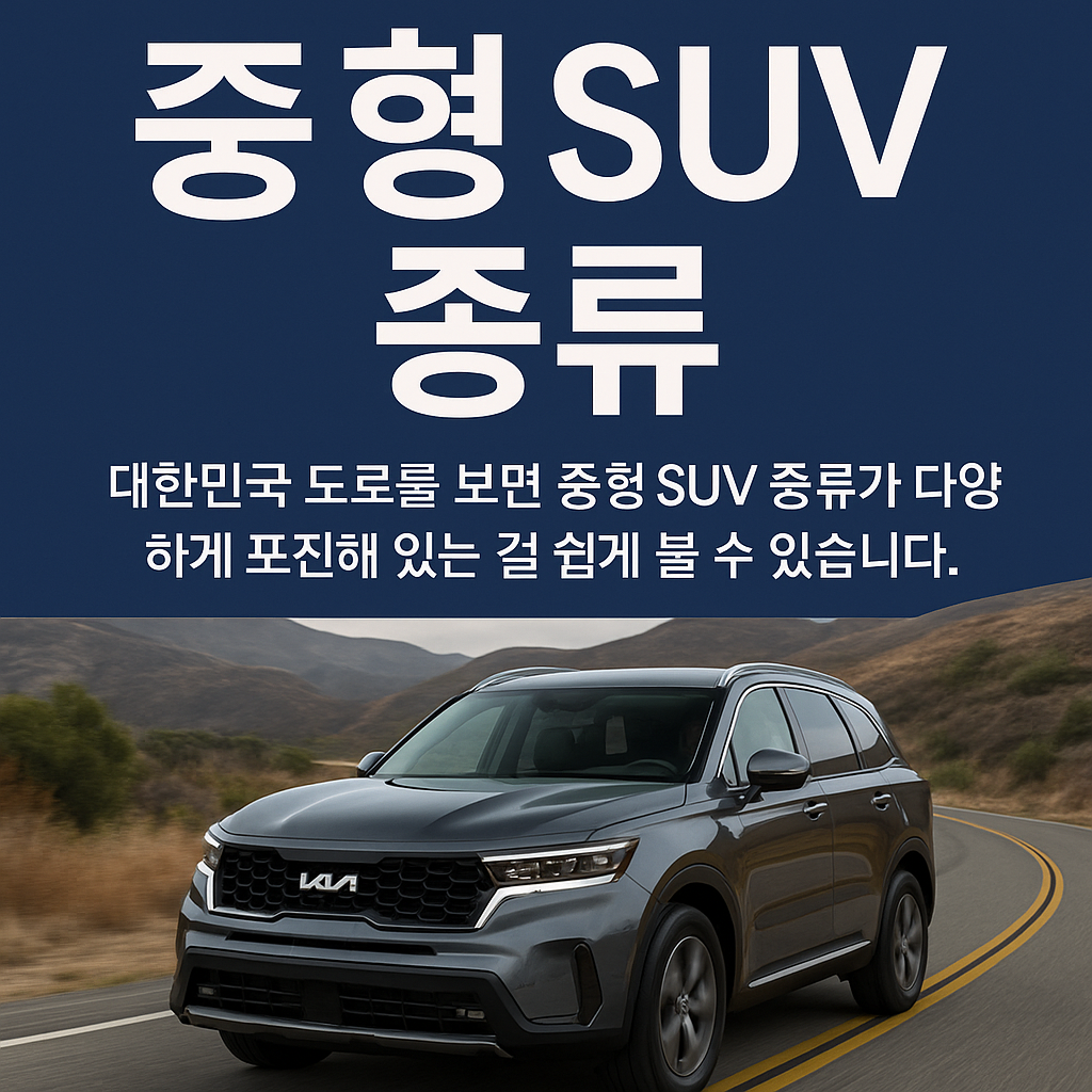 그럼 이제 본격적으로 2025년 기준, 국내에서 선택 가능한 국산/수입 중형 SUV 종류를 살펴보겠습니다.