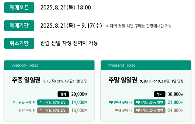 - 사전 구매 + 하나카드 결제: 최대 30% 할인