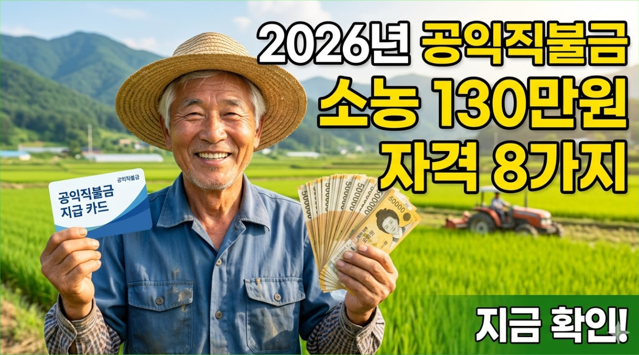 안녕하세요! 오늘은 농업인분들에게 가장 중요한 2026년 공익직불금 정보를 총정리해 드립니다. 특히 올해 2026년 공익직불금은 소농직불금이 130만 원으로 대폭 인상되면서 많은 분이 관심을 두고 계신데요. 내가 대상자인지, 2026년 공익직불금 자격 요건 8가지는 무엇인지 확실히 확인해야 깎이지 않고 전액 수령할 수 있습니다. 지금 바로 2026년 공익직불금 상세 내용을 알아보겠습니다.