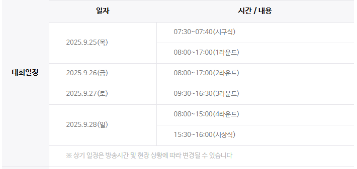 - 일정: 2025년 9월 25일(목) ~ 9월 28일(일)