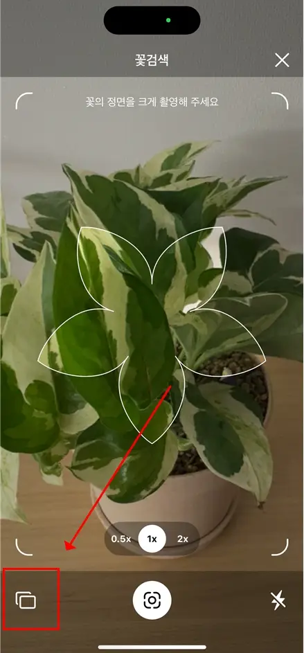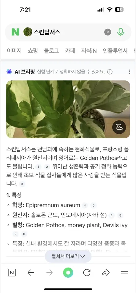 카카오의 다음 앱 렌즈 기능으로, 확률 기반으로 식물 후보를 제시합니다.