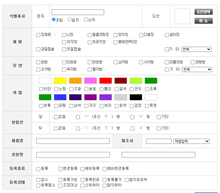 - 제품명, 성분명, 회사명으로 검색 가능