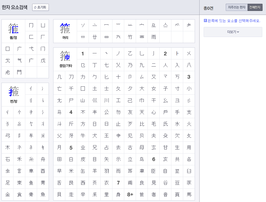 - 이름의 음(발음)을 입력하면 관련 한자가 나열됩니다. 예: