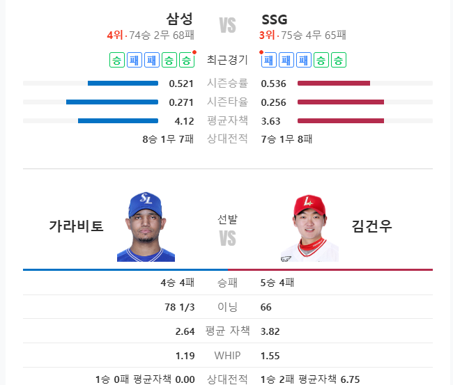 - 대진: 삼성 라이온즈 vs SSG 랜더스