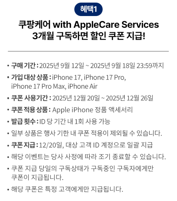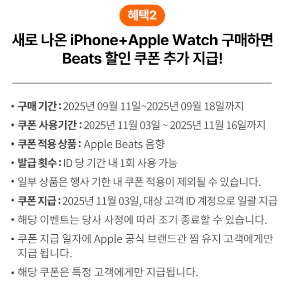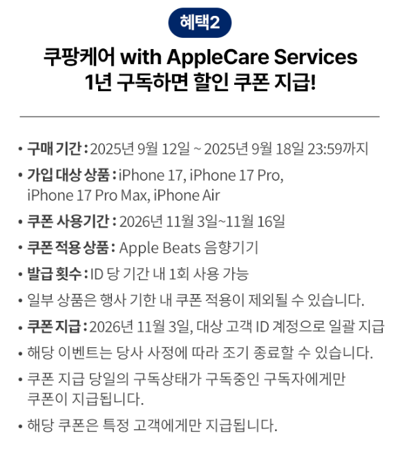 추가 혜택: 액세서리 쿠폰, Beats 할인쿠폰, 쿠팡케어 구독자 할인 등